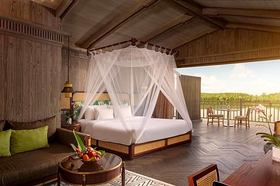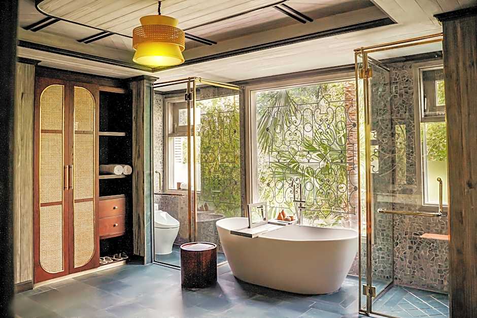 Nestled by the river, Riverfront Pool Villa is an enchanting hideaway where you can wake up to the tranquil notes of waters lapping on the shore. The beauty of Saigon River stretches before you, which can be enjoyed from your private infinity-edge pool and generous sundeck. Designed for couples searching for tranquility and privacy, the villa features a king-sized bed and a living area, including a sofa, offering a comfortable space to unwind. The private bathroom features a bathtub and twin vanities, providing ample room for two.